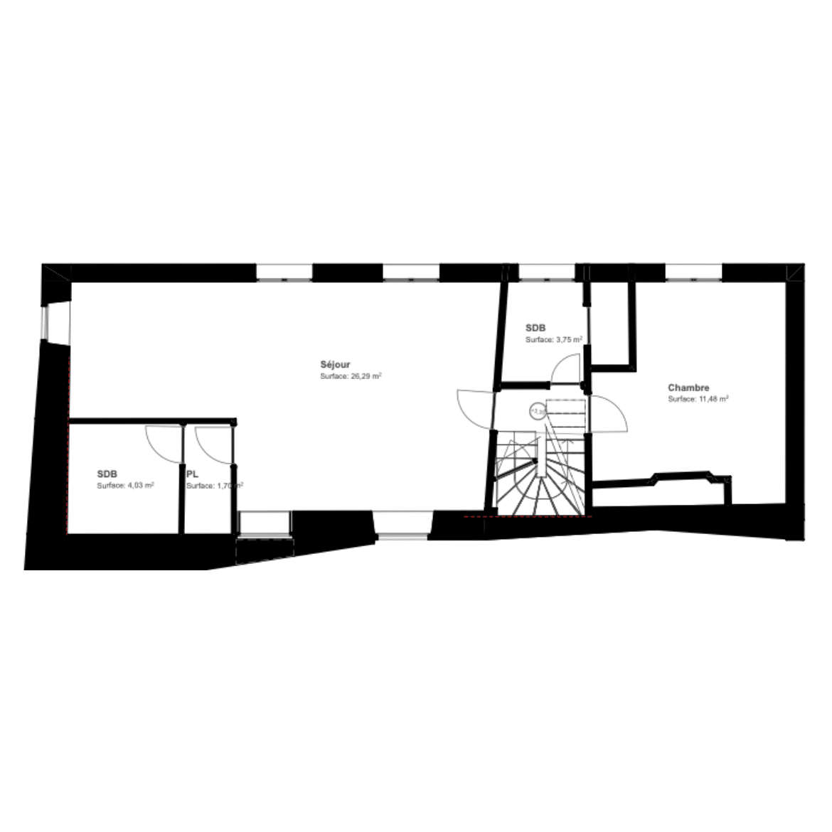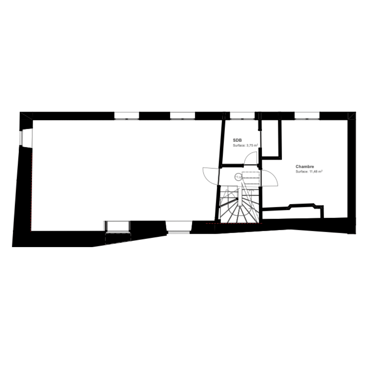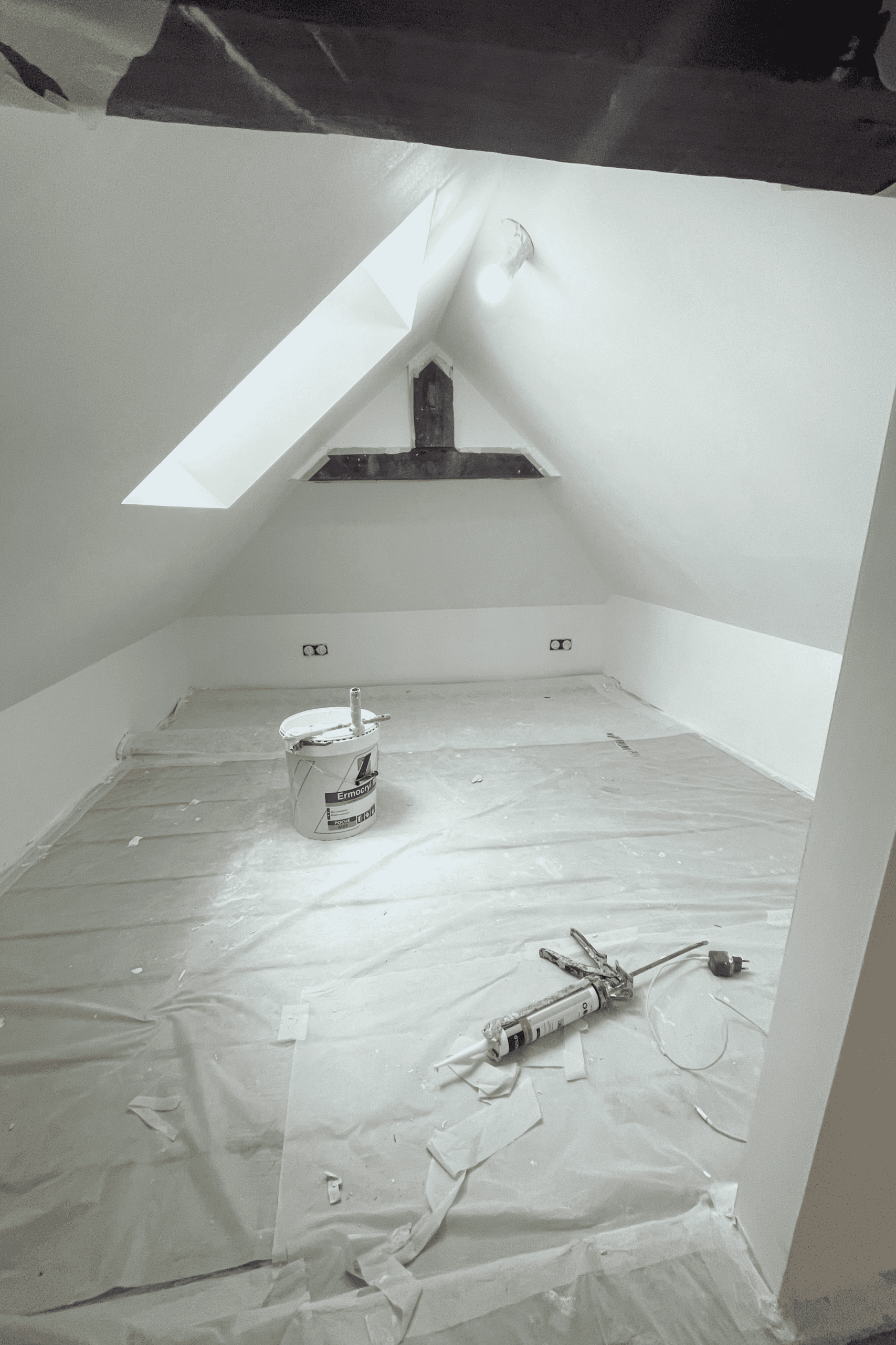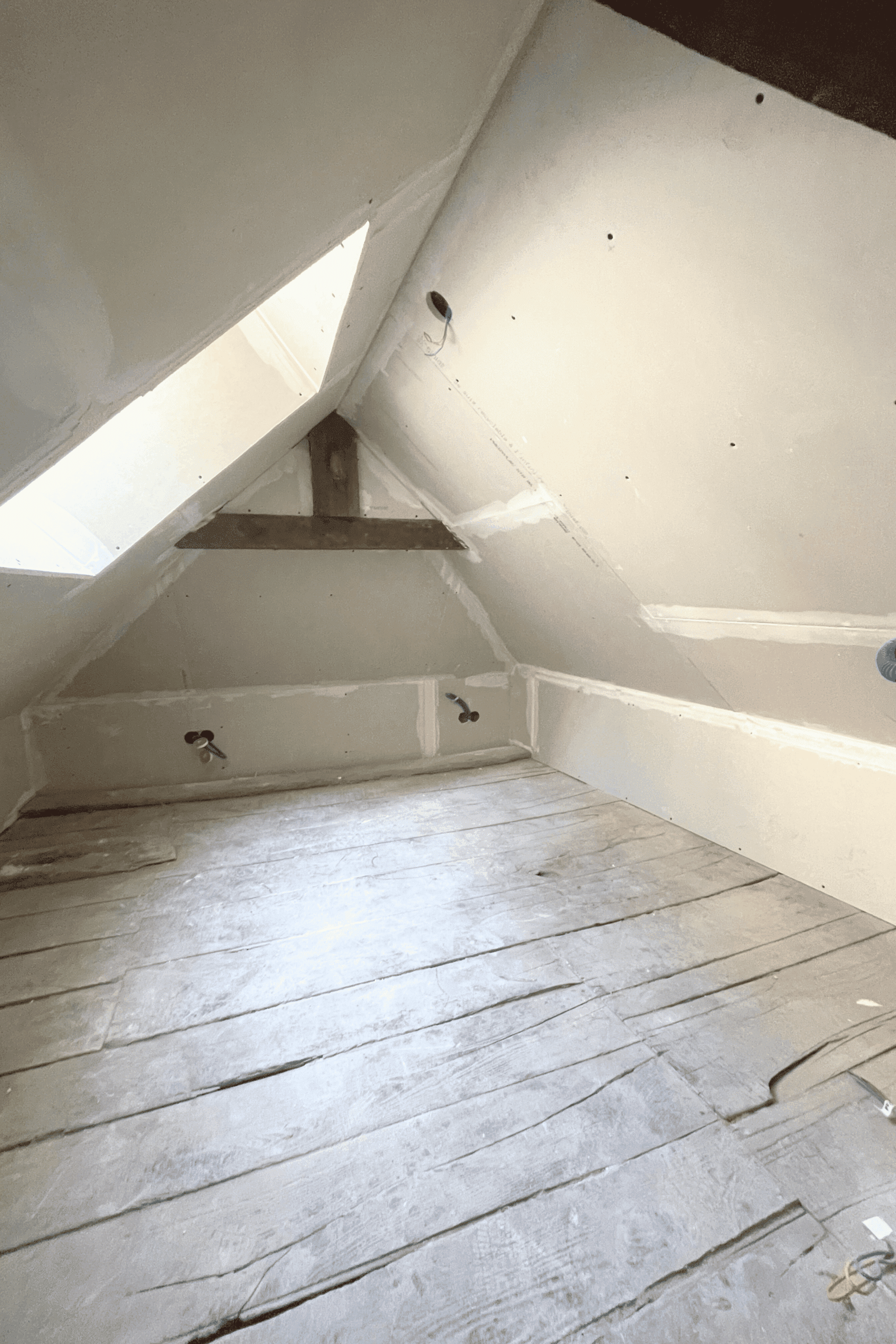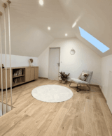 Création d’un séjour en double hauteur par la suppression partielle du plancher des combles.